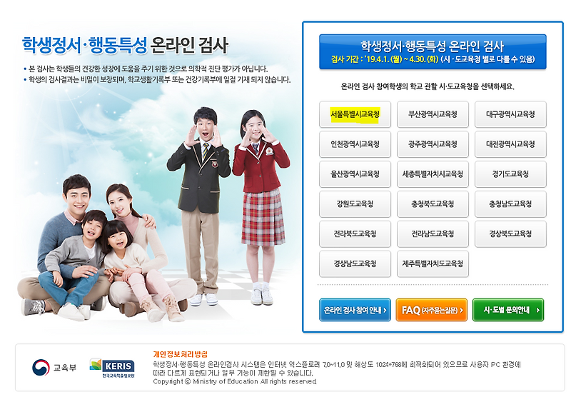 인천광역시교육청 학생정서행동특성검사 관심군 학생 심리치료 지원.